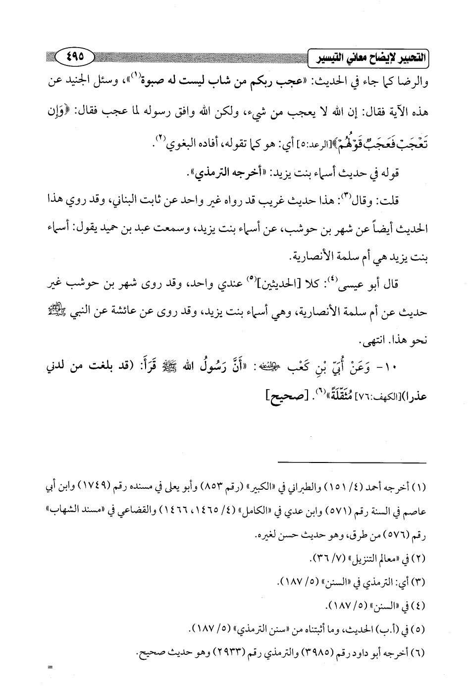 قوله في حديث أسماء بنت يزيد: "أخرجه الترمذي".