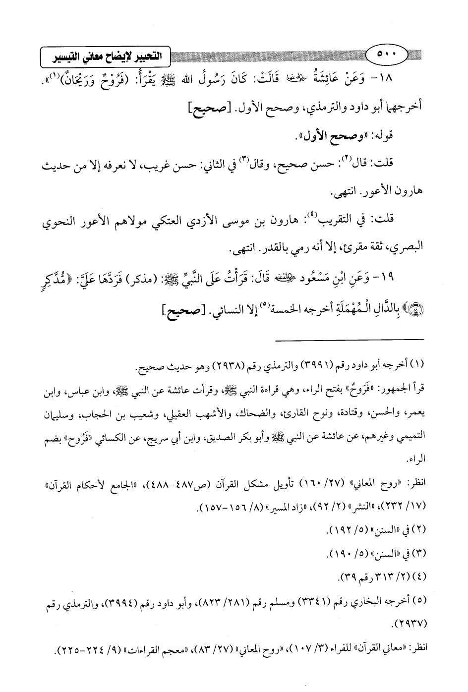 18 - وَعَنْ عَائِشَةُ - رضي الله عنها - قَالَتْ: كَانَ رَسُولُ الله - صلى الله عليه وسلم - يَقْرَأُ: (فَرُوْحٌ وَرَيْحَانٌ) (¬1) ". أخرجهما أبو داود والترمذي، وصحح الأول. [صحيح]