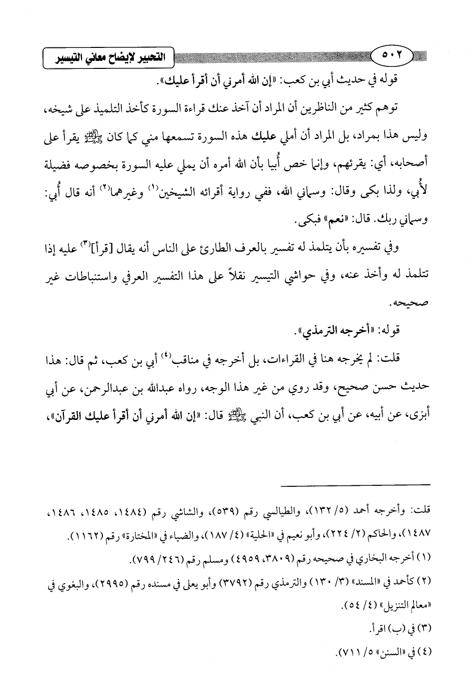 وفي تفسيره بأن يتلمذ له تفسير بالعرف الطارئ على الناس أنه يقال [قرأ] (¬3) عليه إذا تتلمذ له وأخذ عنه، وفي حواشي التيسير نقلاً على هذا التفسير العرفي واستنباطات غير صحيحة.