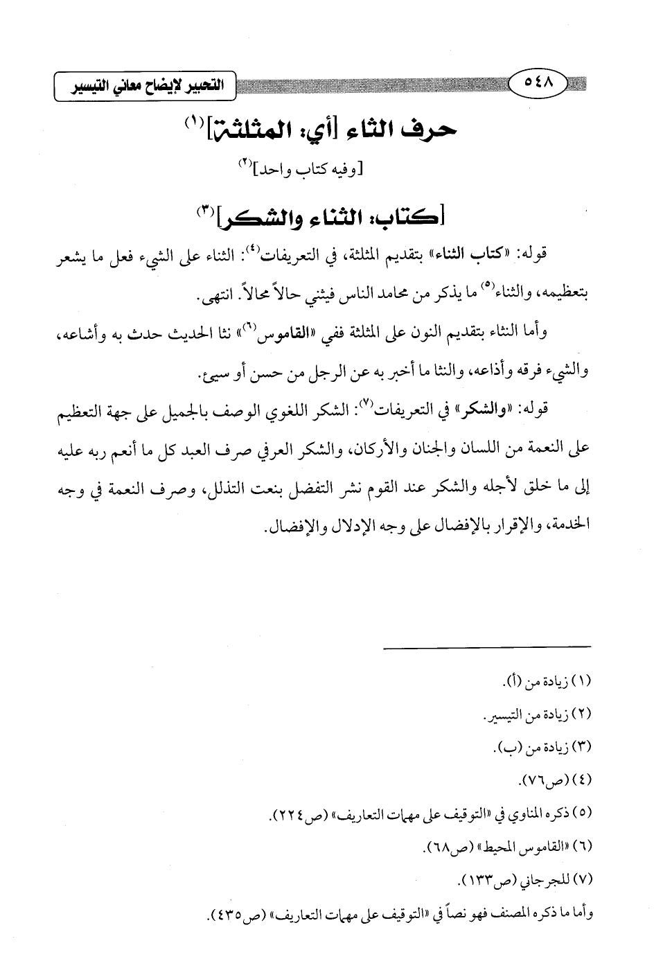 وأما ما ذكره المصنف فهو نصاً في "التوقيف على مهمات التعاريف" (ص 435).