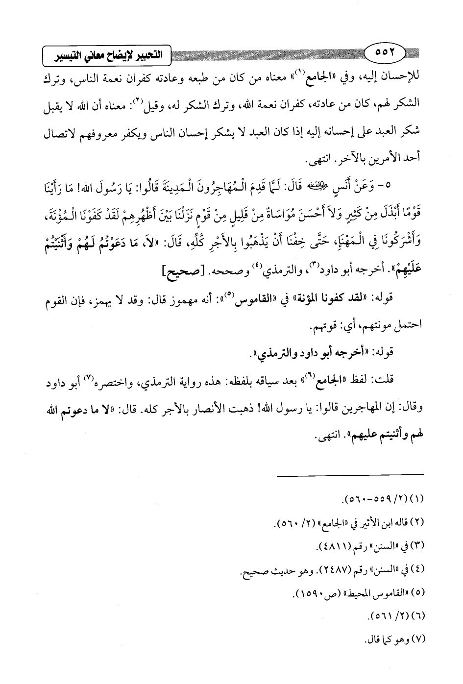 قلت: لفظ "الجامع (¬6) " بعد سياقه بلفظه: هذه رواية الترمذي، واختصره (¬7) أبو داود وقال: إن المهاجرين قالوا: يا رسول الله! ذهبت الأنصار بالأجر كله. قال: "لا ما دعوتم الله لهم وأثنيتم عليهم". انتهى.