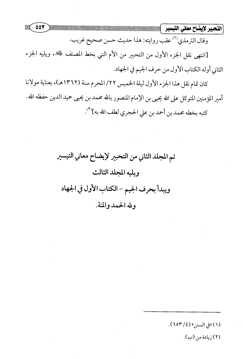 تم المجلد الثاني من التحبير لإيضاح معاني التيسير