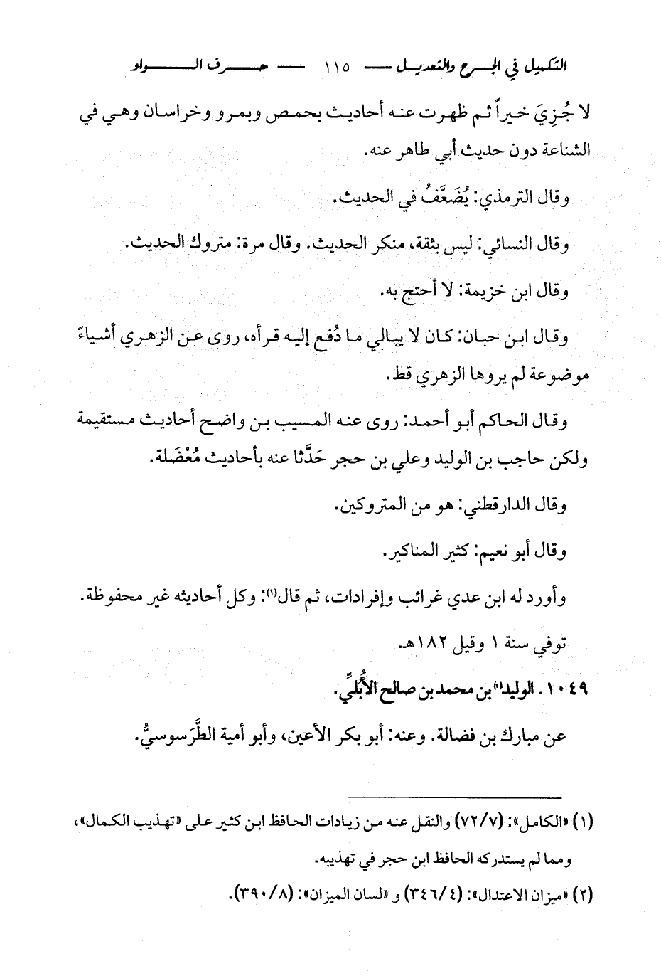 كتاب التكميل في الجرح والتعديل ومعرفة الثقات والضعفاء والمجاهيل (اسم الجزء: 2)