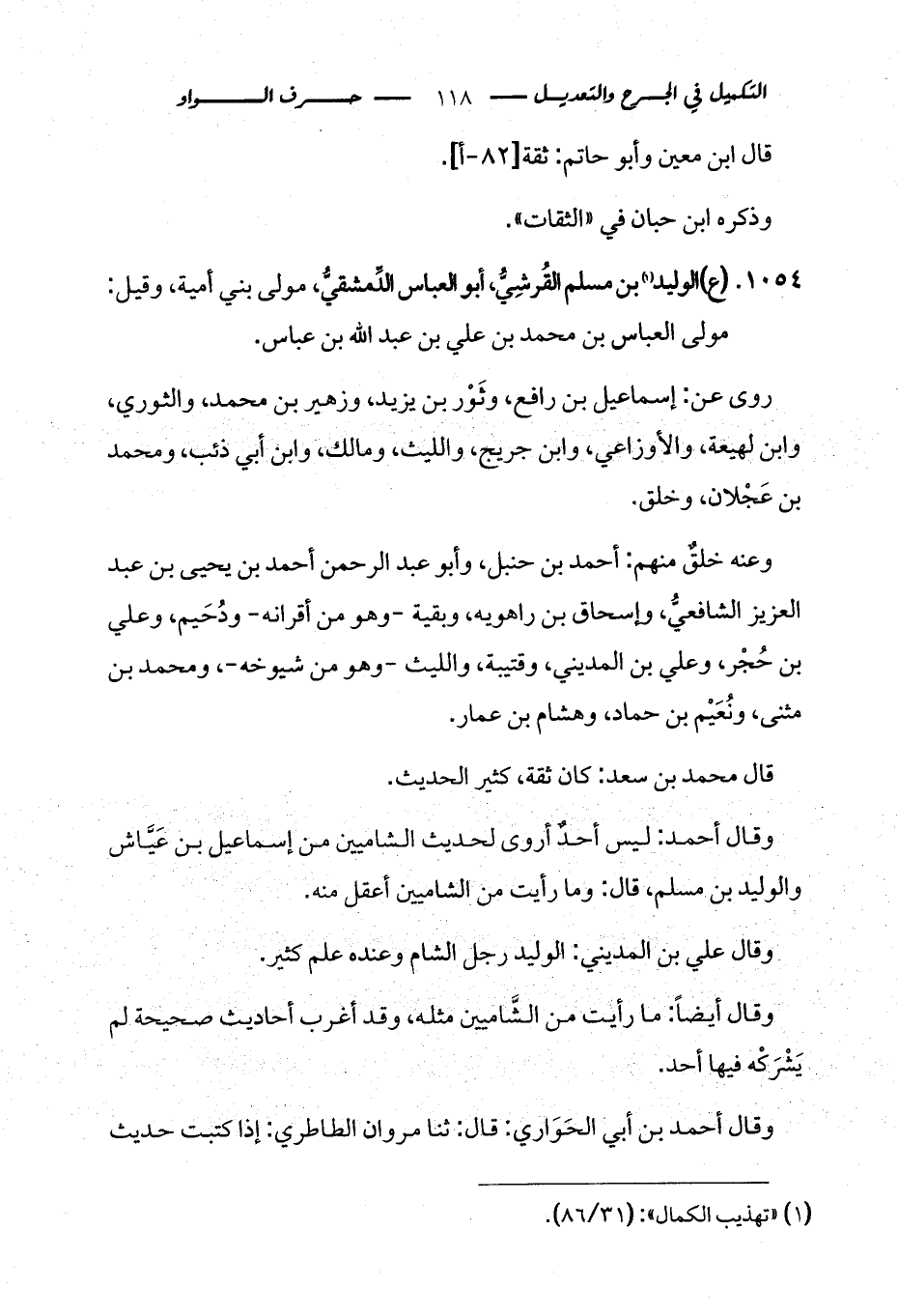 كتاب التكميل في الجرح والتعديل ومعرفة الثقات والضعفاء والمجاهيل (اسم الجزء: 2)