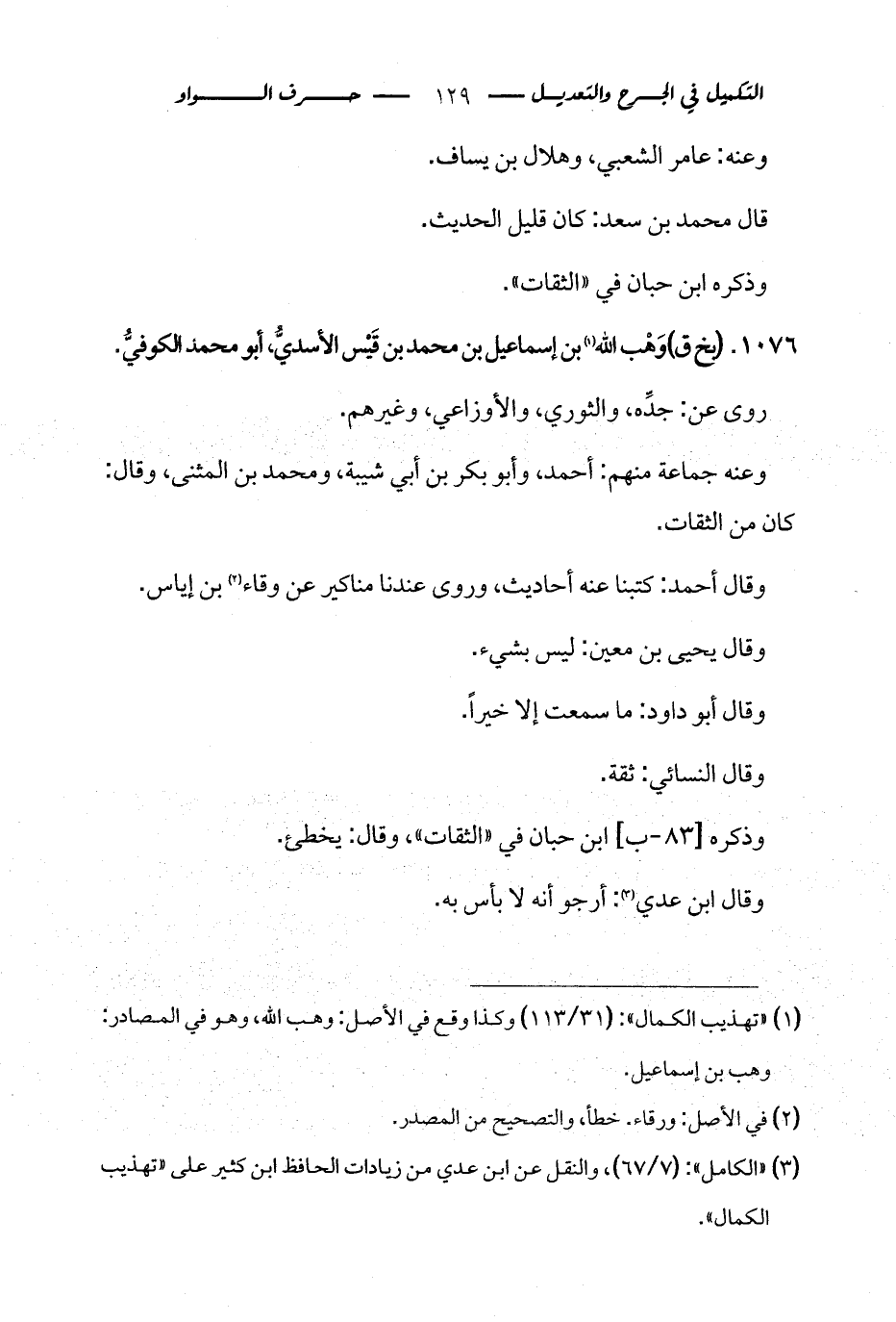 كتاب التكميل في الجرح والتعديل ومعرفة الثقات والضعفاء والمجاهيل (اسم الجزء: 2)