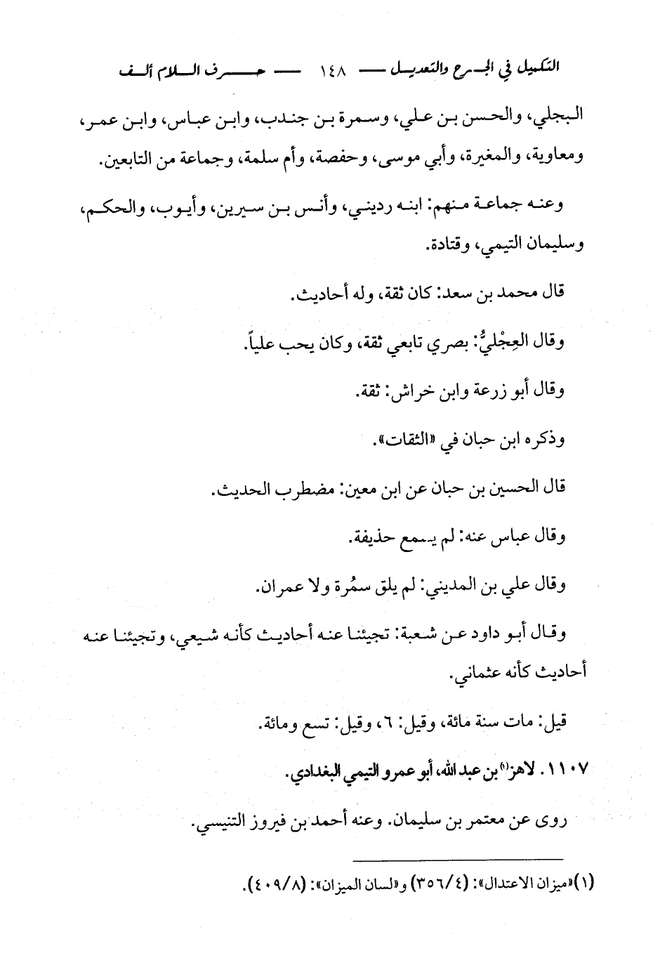 1107 - لاهز (¬1) بن عبد الله، أبو عمرو التيمي البغدادي.