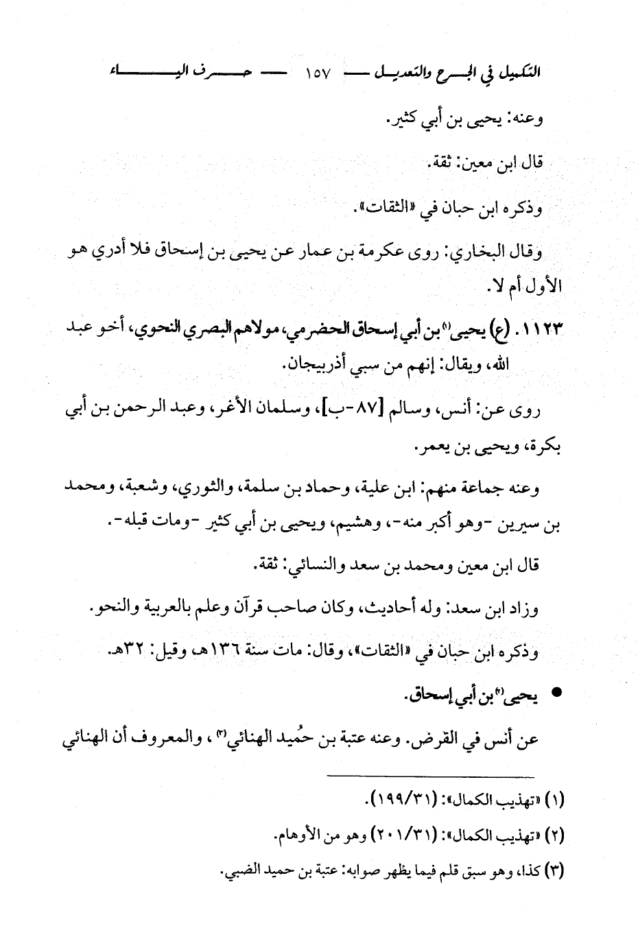 1123 - (ع) يحيى (¬1) بن أبي إسحاق الحضرمي، مولاهم البصري النحوي، أخو عبد الله، ويقال: إنهم من سبي أذربيجان.