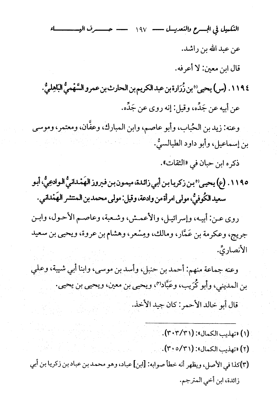 1195 - (ع) يحيى (¬2) بن زكريا بن أبي زائدة، ميمون بن فيروز الهَمْدانيُّ الوادعِيُّ، أبو سعيد الكُوفيُّ، مولى امرأة من وادعة، وقيل: مولى محمد بن المنتشر الهَمْداني.