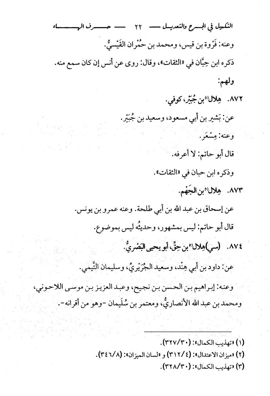 872 - هِلال (¬1) بن جُبَيْر، كوفي.
