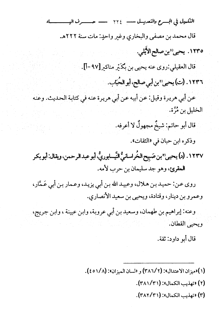 1237 - (د) يحيى (¬3) بن صَبِيح الخُراسانيُّ النَّيسابوريُّ، أبو عبد الرحمن، ويقال: أبو بكر المقرئ، وهو جد سليمان بن حرب لأمه.