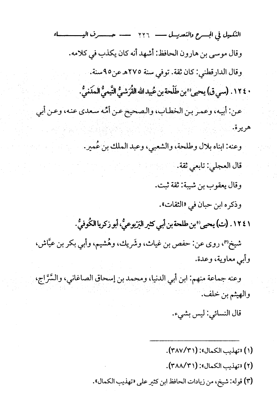 1241 - (ت) يحيى (¬2) بن طلحة بن أبي كثير اليَرْبوعيُّ، أبو زكريا الكُوفيُّ.