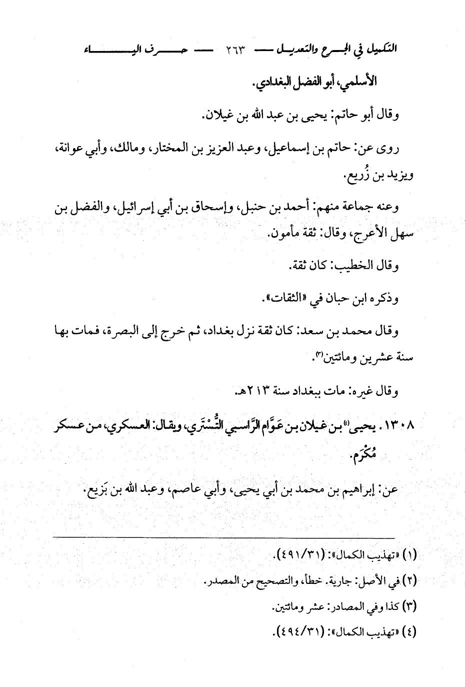 1308 - يحيى (¬2) بن غيلان بن عَوَّام الرَّاسبي التُّسْتَري، ويقال: العسكري، من عسكر مُكْرَم.