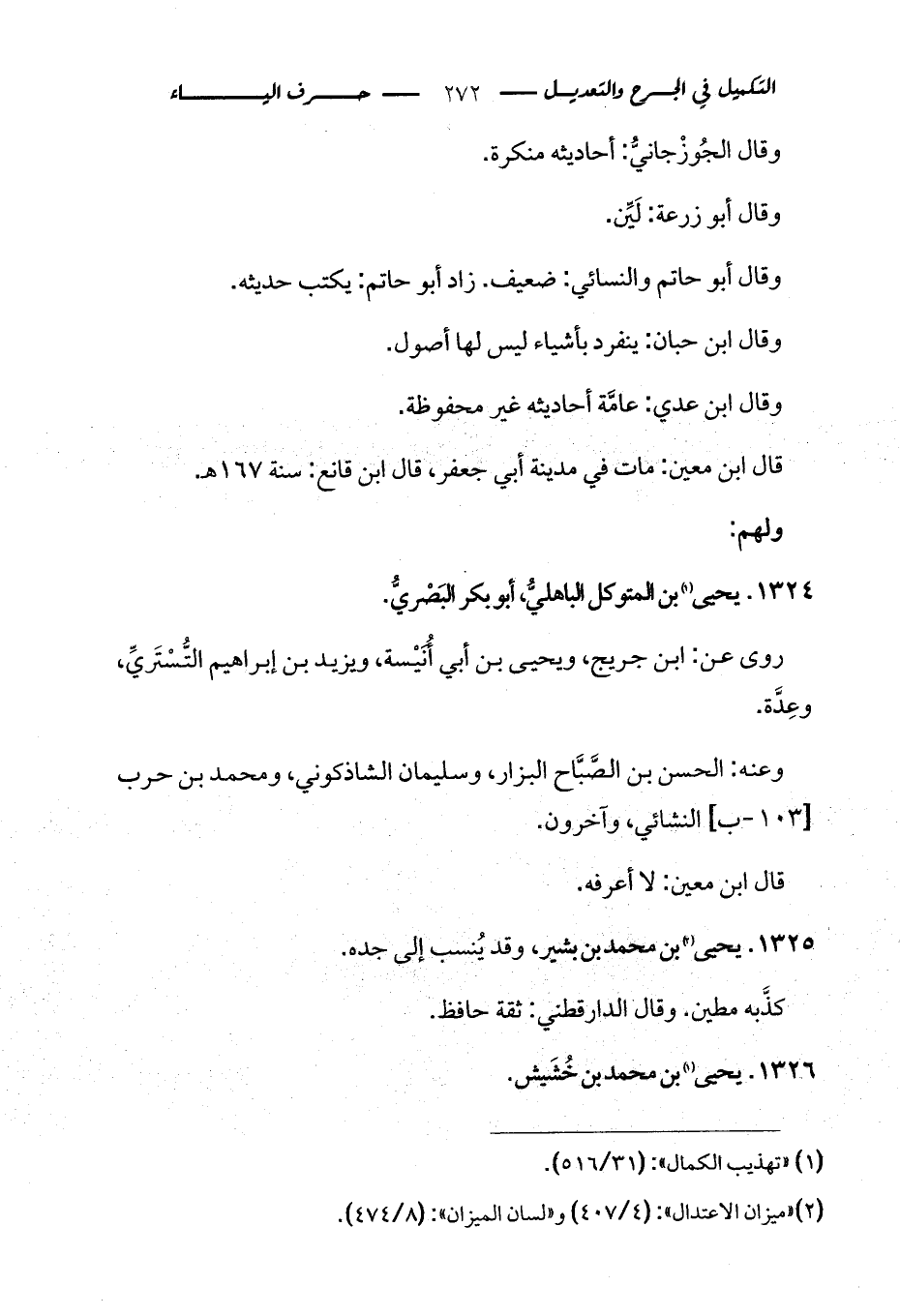 1324 - يحيى (¬1) بن المتوكل الباهليُّ، أبو بكر البَصْريُّ.