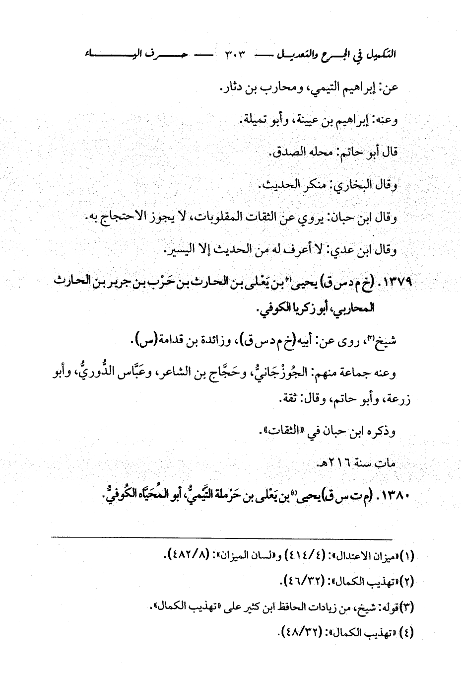 1380 - (م ت س ق) يحيى (¬3) بن يَعْلى بن حَرْملة التَّيْميُّ، أبو المُحَيَّاه الكُوفيُّ.