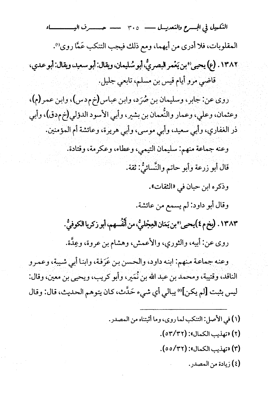 1383 - (بخ م 4) يحيى (¬3) بن يَمَان العِجْليُّ، من أَنْفُسهم، أبو زكريا الكوفيُّ.
