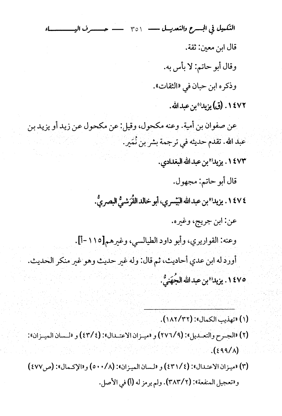 (¬3) «ميزان الاعتدال»: (4/ 431) و «لسان الميزان»: (8/ 500) و «الإكمال»: (ص477) و «تعجيل المنفعة»: (2/ 383). ولم يرمز له (أ) في الأصل.