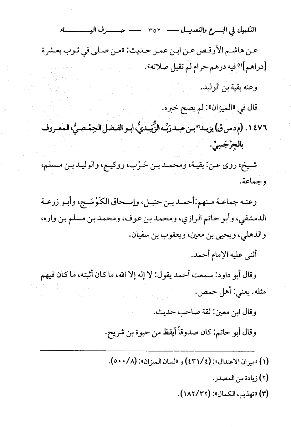 1476 - (م د س ق) يزيد (¬2) بن عبد رَبِّه الزُّبَيديُّ، أبو الفضل الحِمْصيُّ، المعروف بالجِرْجَسِيِّ.