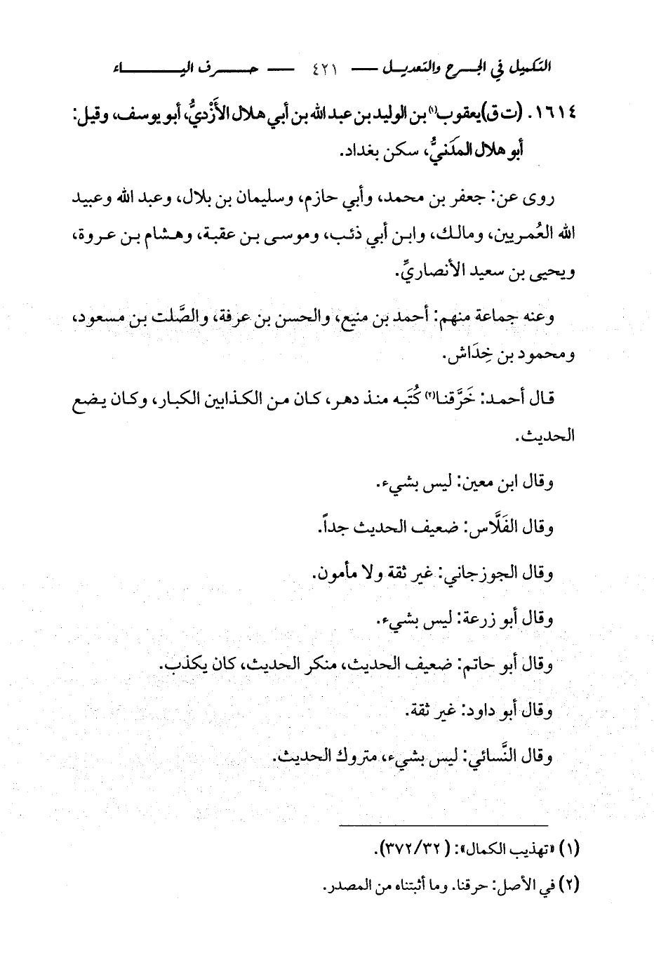 كتاب التكميل في الجرح والتعديل ومعرفة الثقات والضعفاء والمجاهيل (اسم الجزء: 2)