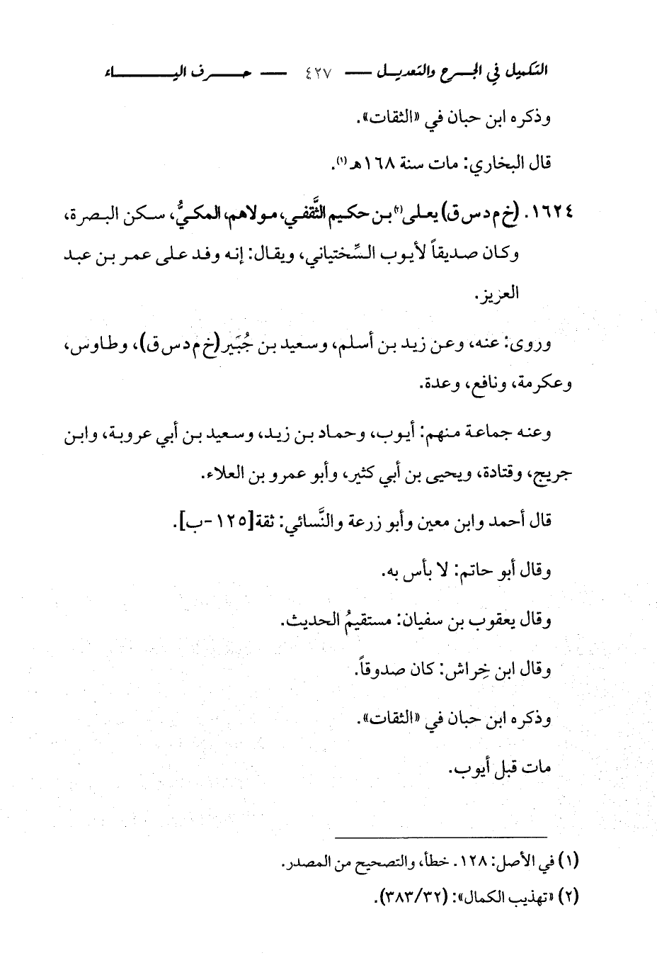 كتاب التكميل في الجرح والتعديل ومعرفة الثقات والضعفاء والمجاهيل (اسم الجزء: 2)