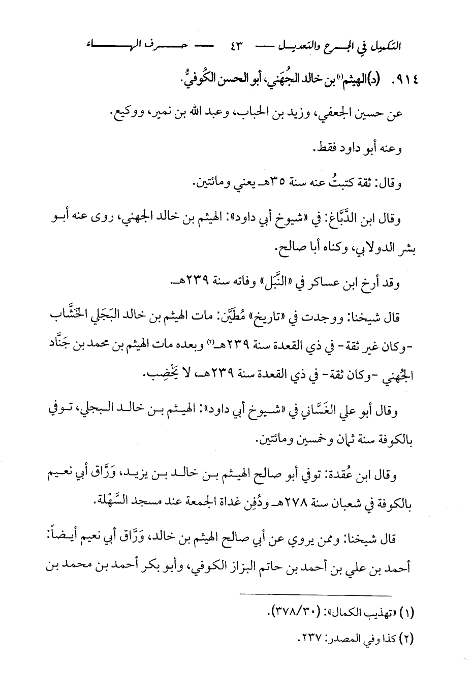 كتاب التكميل في الجرح والتعديل ومعرفة الثقات والضعفاء والمجاهيل (اسم الجزء: 2)