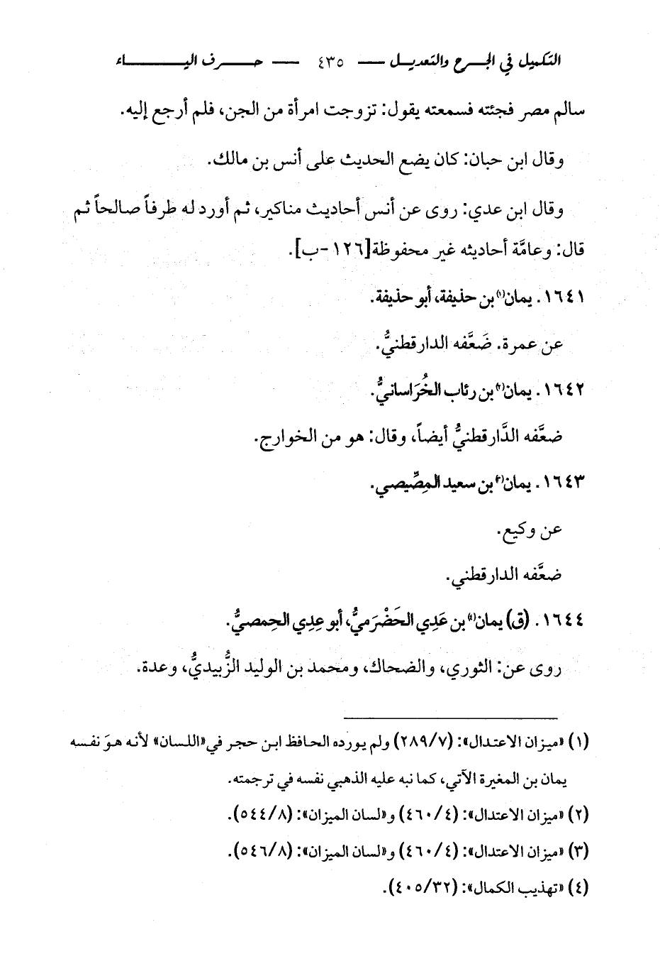 (¬1) «ميزان الاعتدال»: (7/ 289) ولم يورده الحافظ ابن حجر في «اللسان» لأنه هوَ نفسه يمان بن المغيرة الآتي، كما نبه عليه الذهبي نفسه في ترجمته.