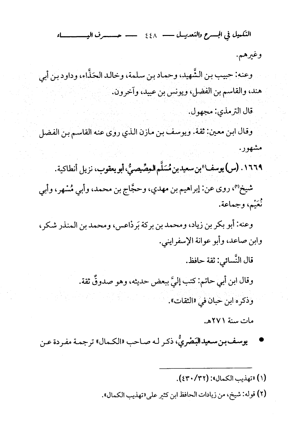 1669 - (س) يوسف (¬1) بن سعيد بن مُسَلَّم المِصِّيصيُّ، أبو يعقوب، نزيل أنطاكية.
