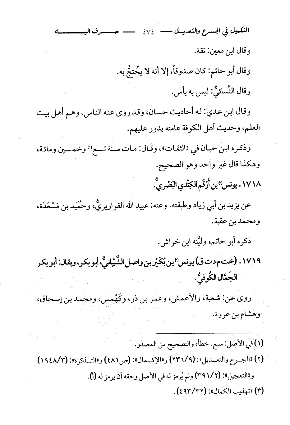 1718 - يونس (¬2) بن أَرْقَم الكِنْدي البَصْريُّ.