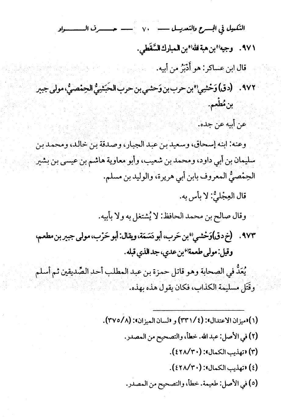 972 - (د ق) وَحْشِي (¬3) بن حرب بن وَحشي بن حرب الحَبَشِيُّ الحِمْصيُّ، مولى جبير بن مُطْعم.