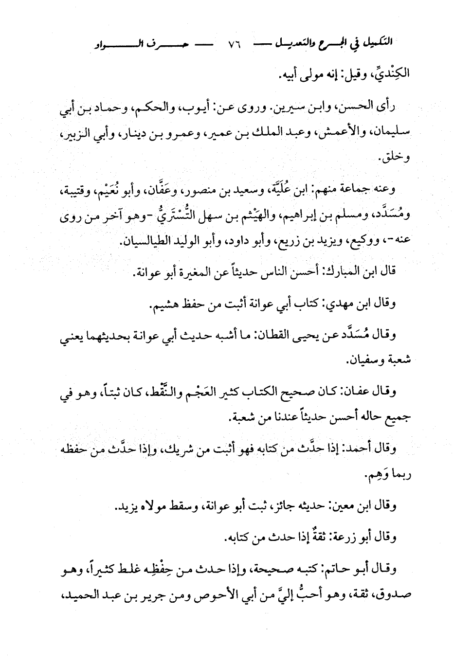 وقال ابن مهدي: كتاب أبي عوانة أثبت من حفظ هشيم.