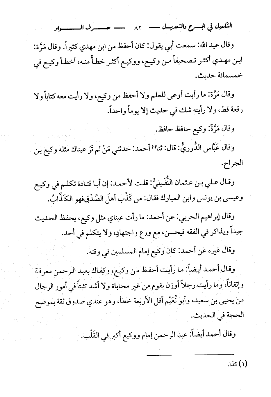 وقال أحمد أيضاً: عبد الرحمن إمام ووكيع أكبر في القَلْب.