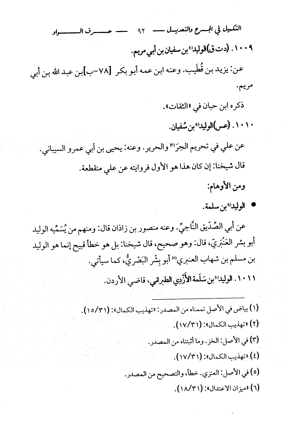 كتاب التكميل في الجرح والتعديل ومعرفة الثقات والضعفاء والمجاهيل (اسم الجزء: 2)