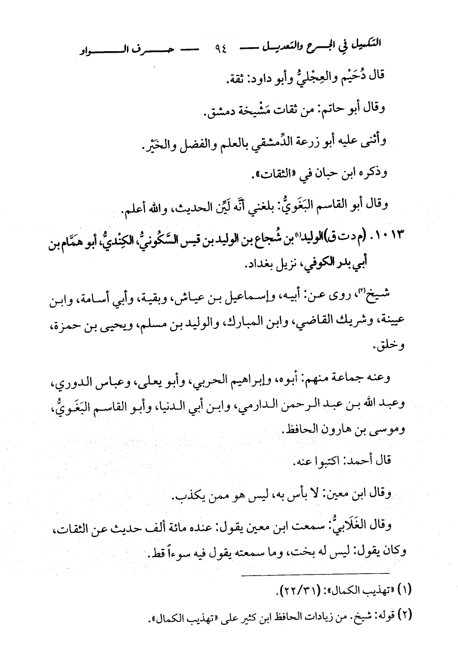 كتاب التكميل في الجرح والتعديل ومعرفة الثقات والضعفاء والمجاهيل (اسم الجزء: 2)