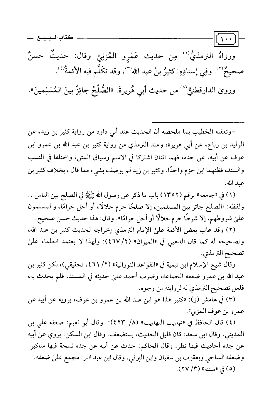 (¬2) وقد عاب بعض الأئمة على الإمام الترمذي إخراجه لحديث كثير بن عبد اللَّه، وتصحيحه له كما قال الذهبي في "الميزان" (2/ 467): ولهذا لا يعتمد العلماء على تصحيح الترمذي.