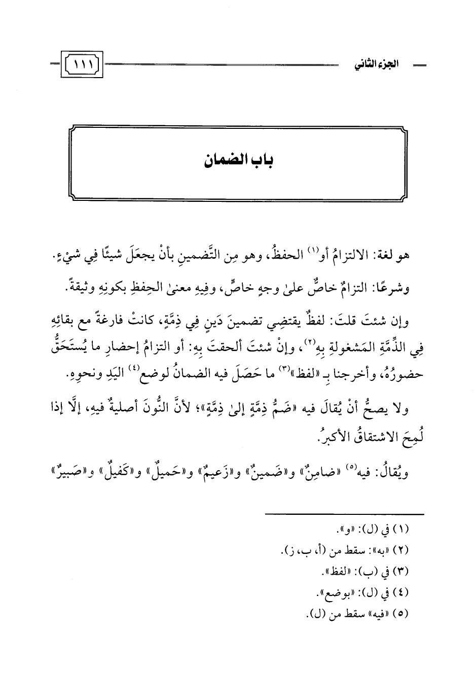 هو لغة: الالتزامُ أو (¬1) الحفظُ، وهو مِن التَّضمينِ بأنْ يجعَلَ شيئًا فِي شيْءٍ.