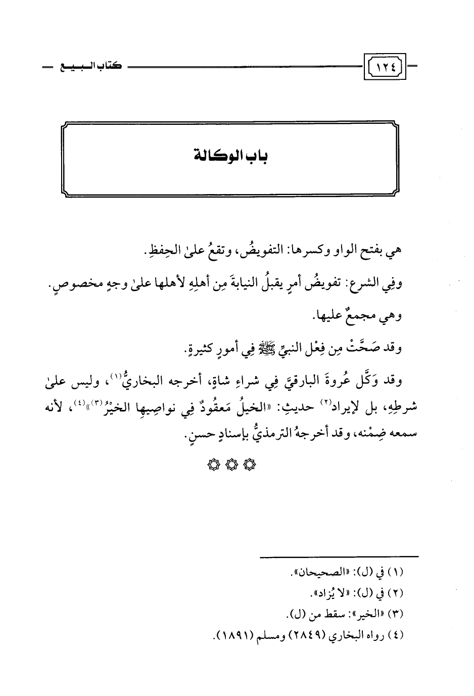 وقد وَكَّل عُروةَ البارقيَّ فِي شراءِ شاةٍ، أخرجه البخاريُّ (¬1)، وليس على شرطِهِ، بل لإيراد (¬2) حديثِ: "الخيلُ مَعقُودٌ فِي نواصِيهِا الخيْرُ (¬3) " (¬4)، لأنه سمعه ضِمْنه، وقد أخرجهُ الترمذيُّ بإسنادٍ حسنٍ.