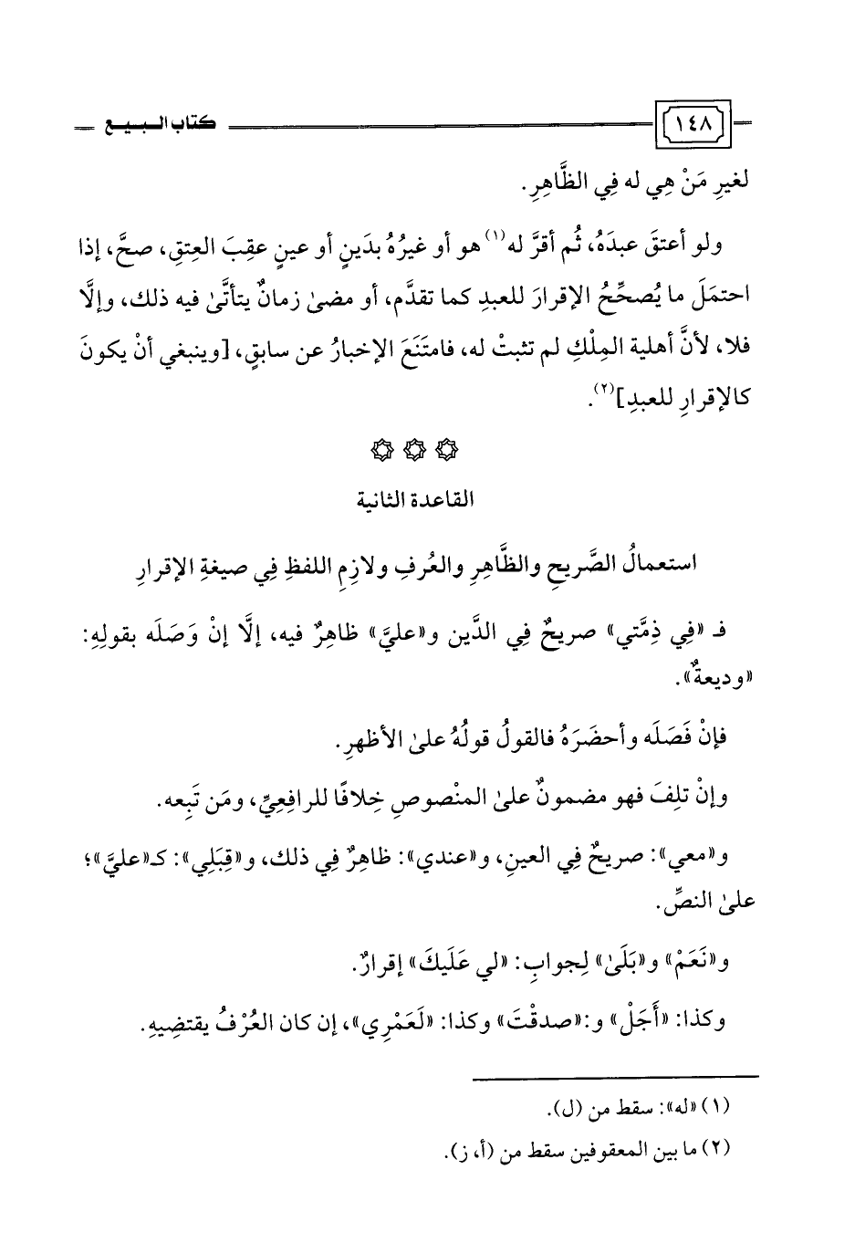 و"نَعَمْ" و"بَلَى" لِجوابِ: "لي عَلَيكَ" إقرارٌ.