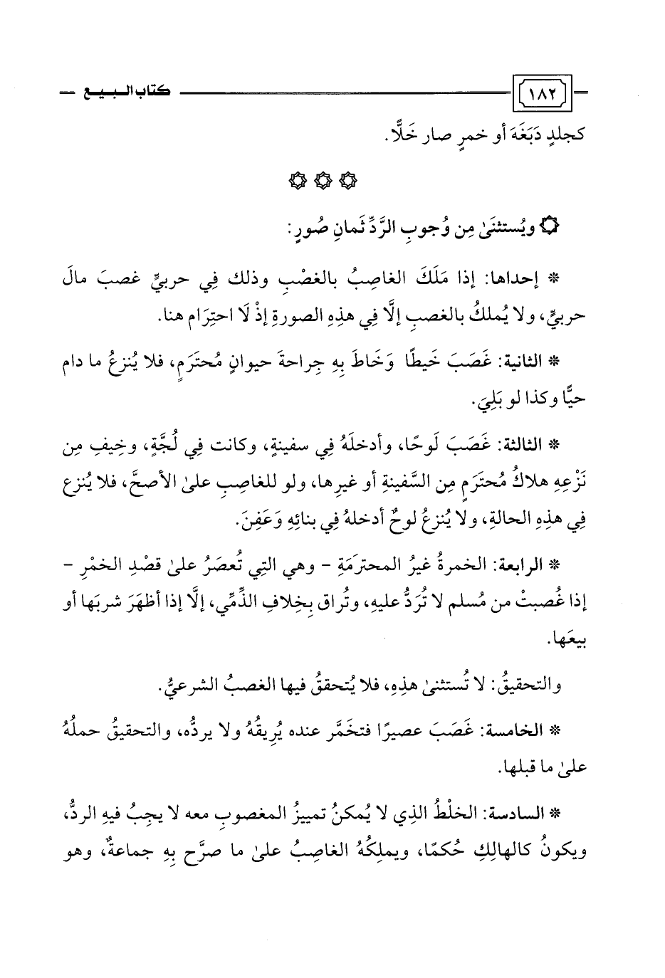 * ويُستثنَى مِن وُجوبِ الرَّدِّ ثَمانِ صُورٍ: