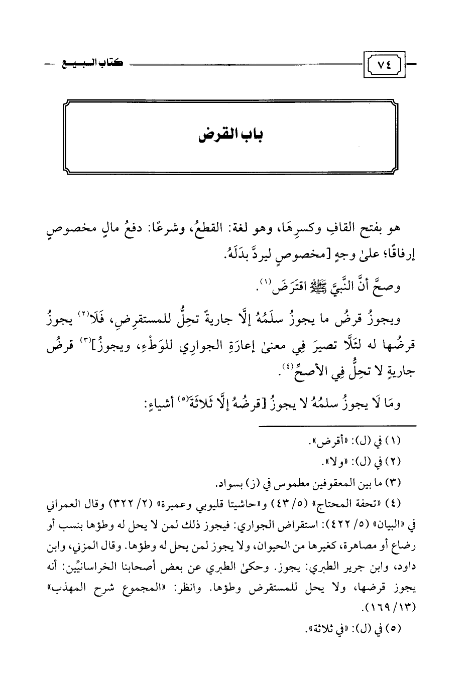 (¬4) "تحفة المحتاج" (5/ 43) و"حاشيتا قليوبي وعميرة" (2/ 322) وقال العمراني في "البيان" (5/ 422): استقراض الجواري: فيجوز ذلك لمن لا يحل له وطؤها بنسب أو رضاع أو مصاهرة، كغيرها من الحيوان، ولا يجوز لمن يحل له وطؤها. وقال المزني، وابن داود، وابن جرير الطبري: يجوز. وحكى الطبري عن بعض أصحابنا الخراسانيِّين: أنَّه يجوز قرضها، ولا يحل للمستقرض وطؤها. وانظر: "المجموع شرح المهذب" (13/ 169).