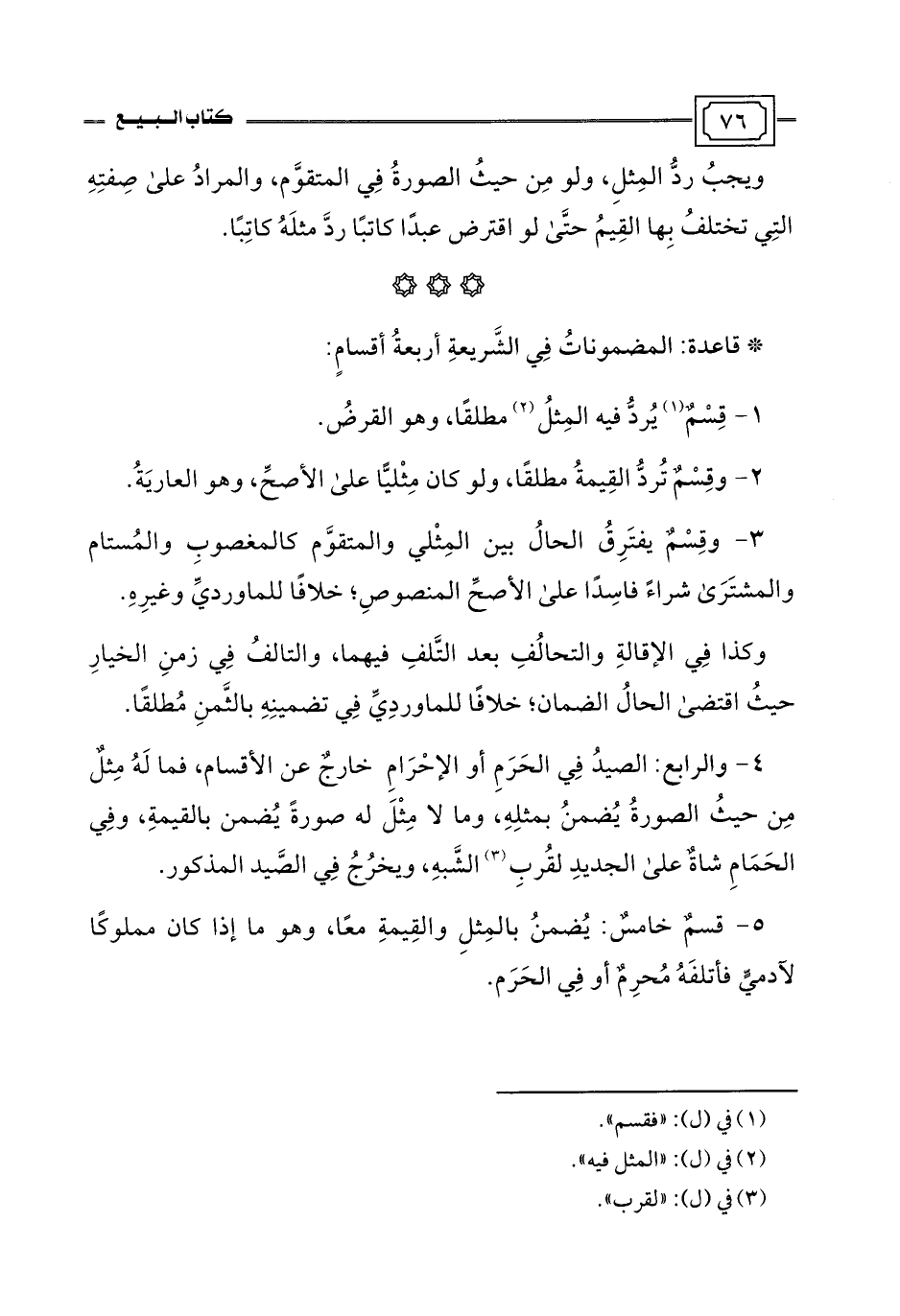 * قاعدة: المضموناتُ فِي الشَّريعةِ أربعةُ أقسامٍ: