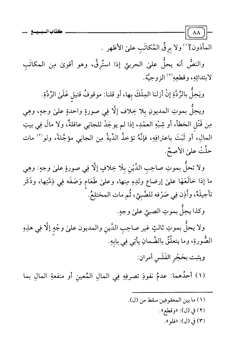 ولا يحلُّ بموتِ ثالثٍ غير صاحِبِ الدَّينِ والمديون على وجْهٍ إلَّا فِي هذِهِ الصُّورةِ، وما يتعلَّقُ بالضَّمانِ يأتِي فِي بابِهِ.