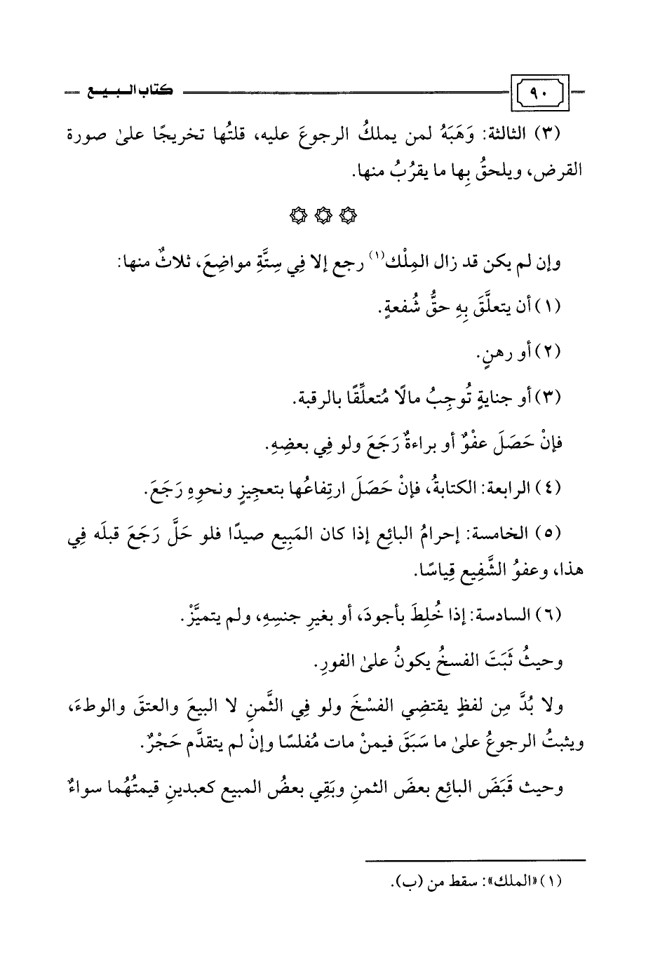 (5) الخامسة: إحرامُ البائِع إذا كان المَبِيع صيدًا فلو حَلَّ رَجَعَ قبلَه فِي هذا، وعفوُ الشَّفِيع قِياسًا.