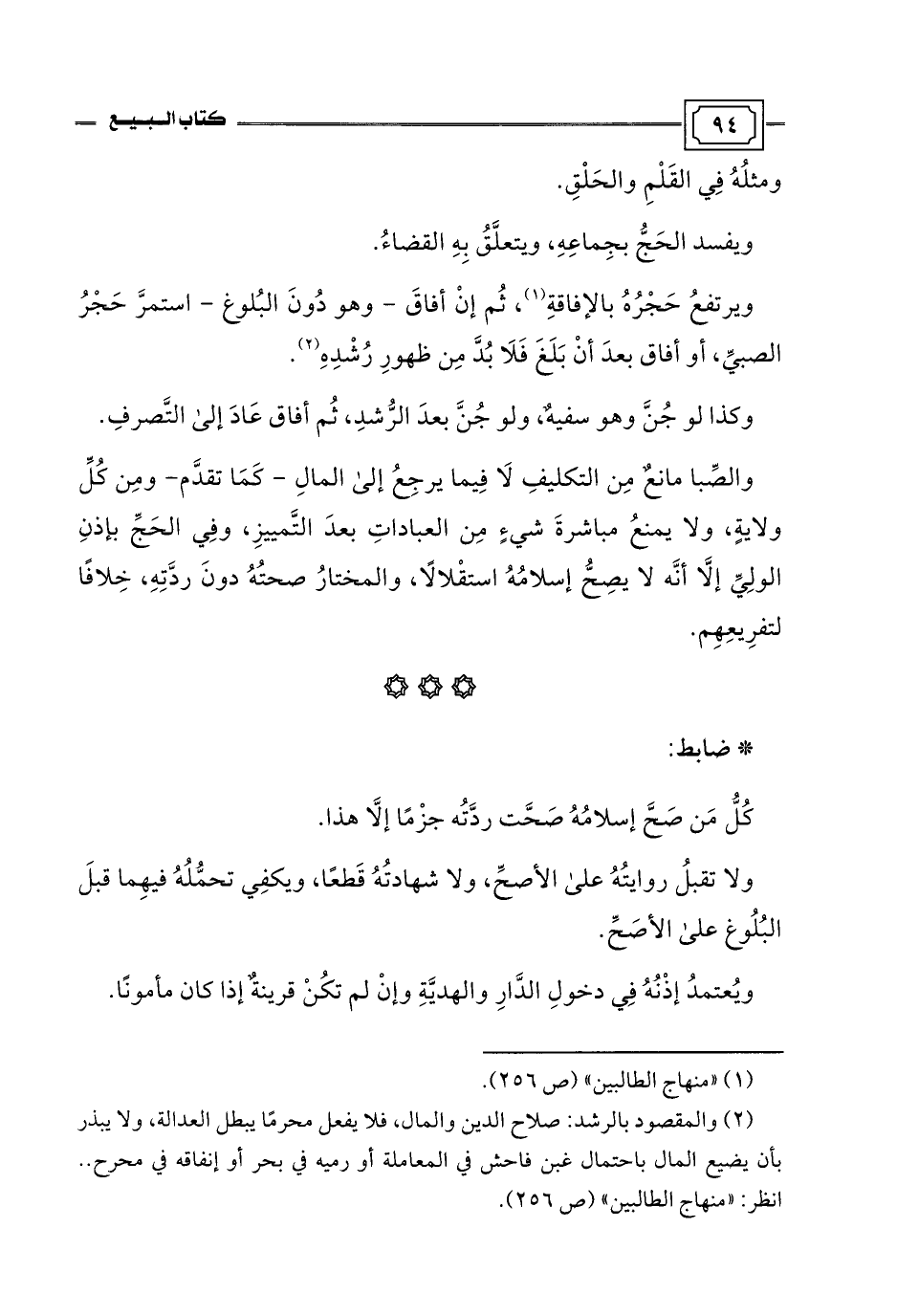 (¬1) "منهاج الطالبين" (ص 256).