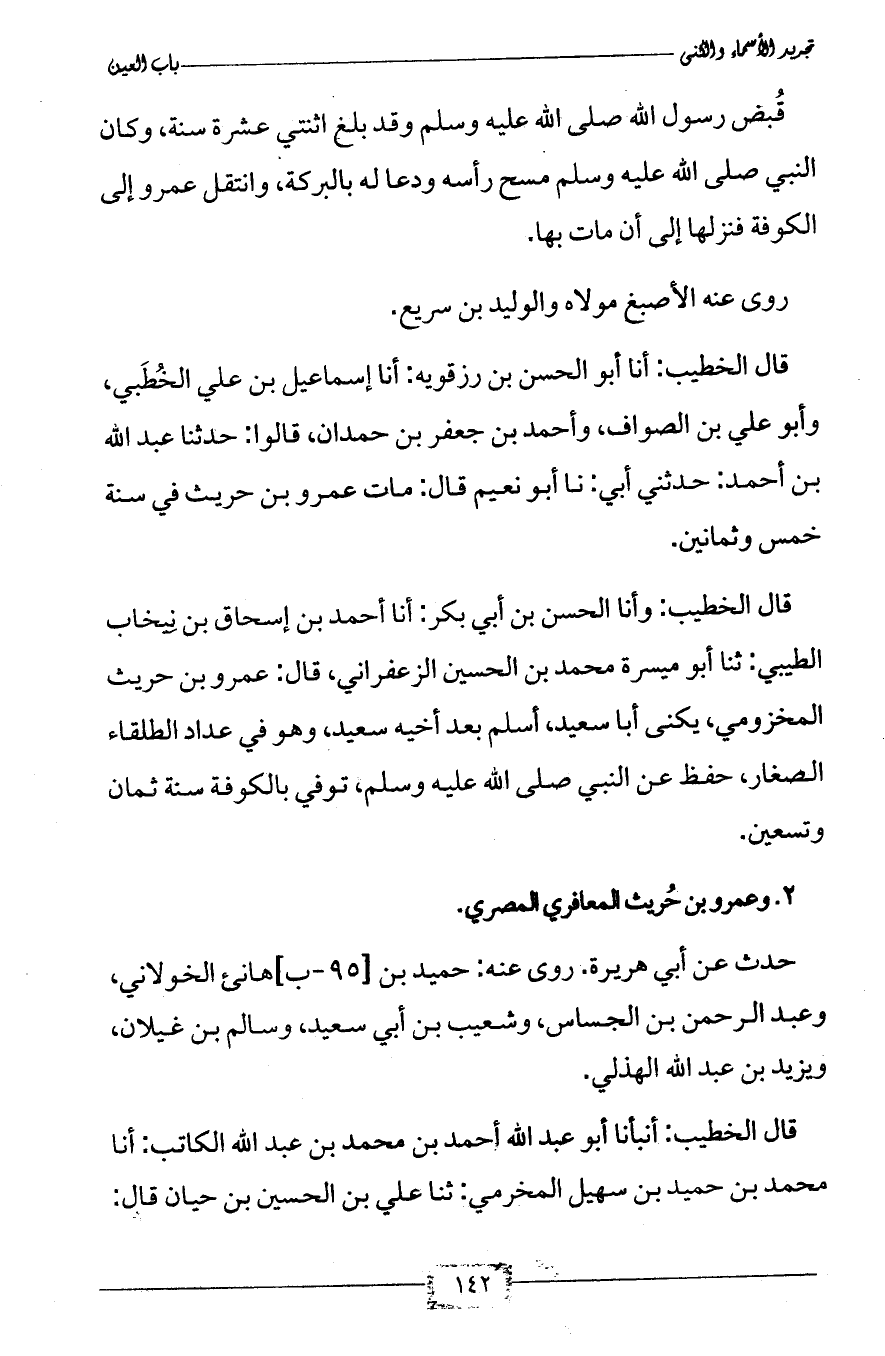 2 - وعمرو بن حُريث المعافري المصري.
