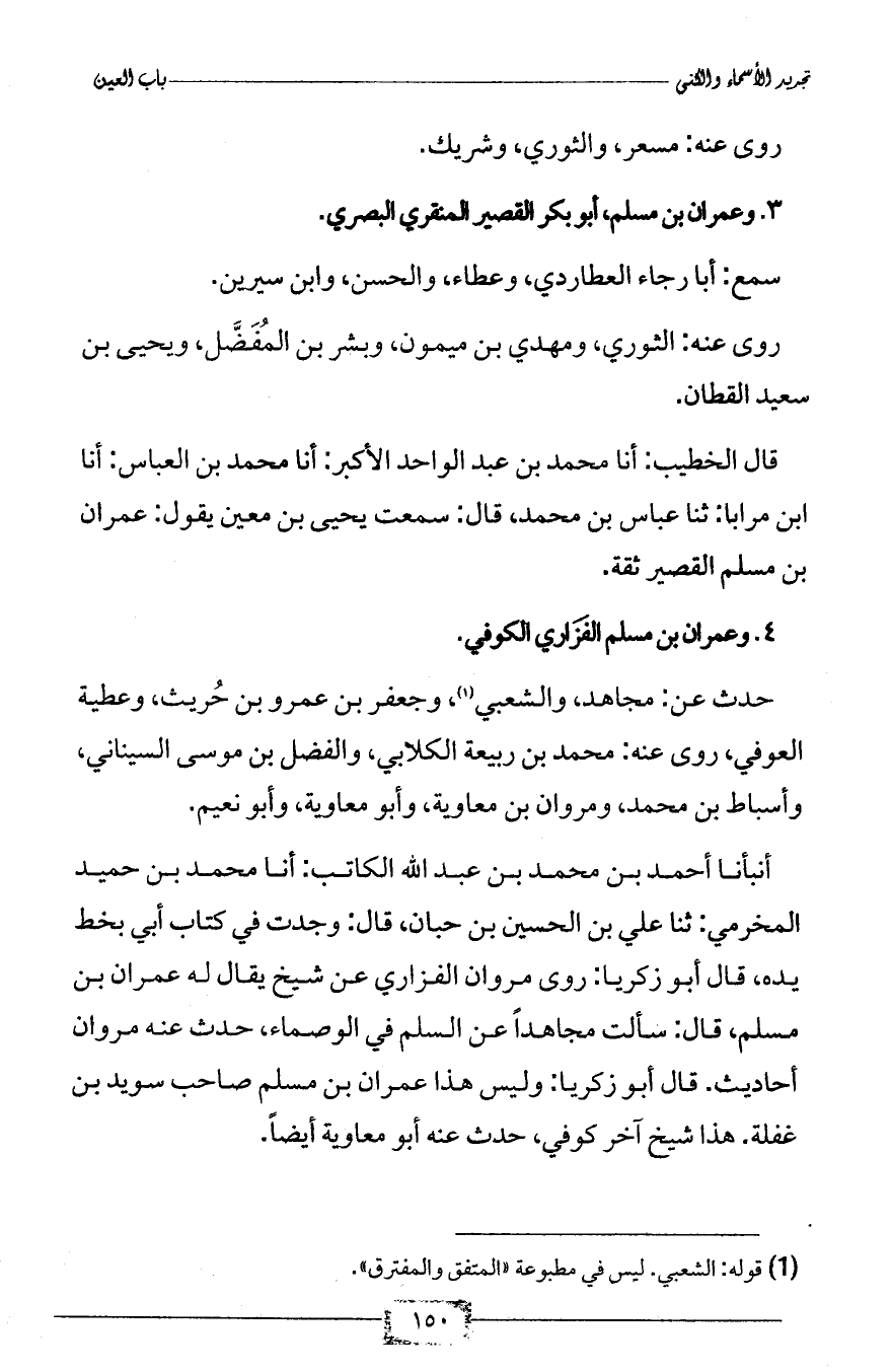 4 - وعمران بن مسلم الفَزَاري الكوفي.