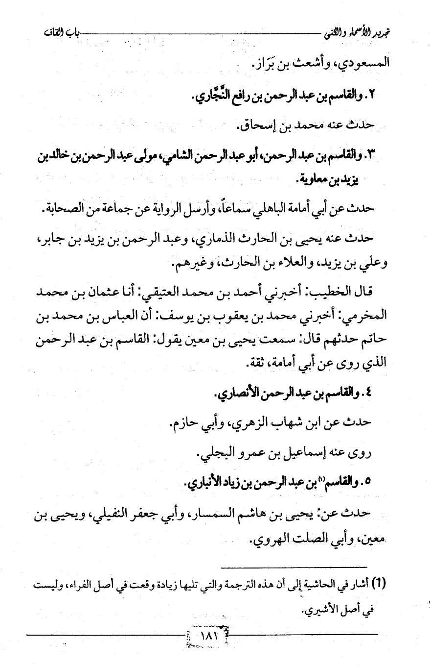 3 - والقاسم بن عبد الرحمن، أبو عبد الرحمن الشامي، مولى عبد الرحمن بن خالد بن يزيد بن معاوية.