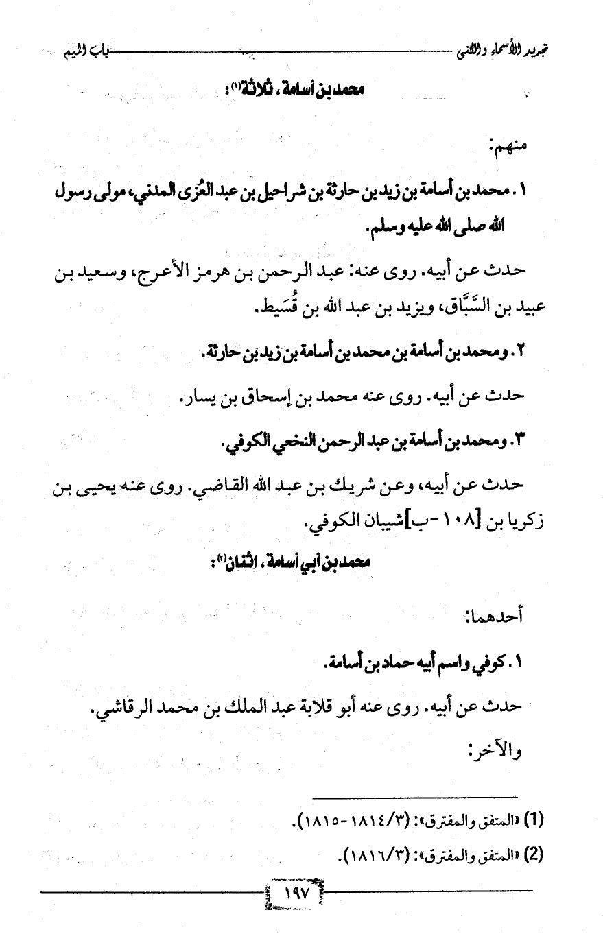 2 - ومحمد بن أسامة بن محمد بن أسامة بن زيد بن حارثة.