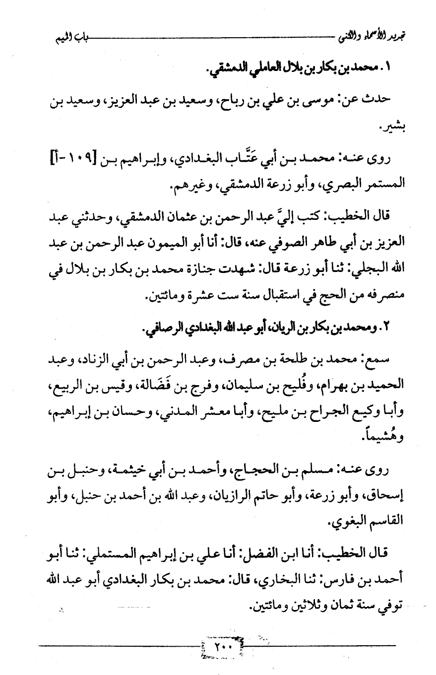 1 - محمد بن بكار بن بلال العاملي الدمشقي.