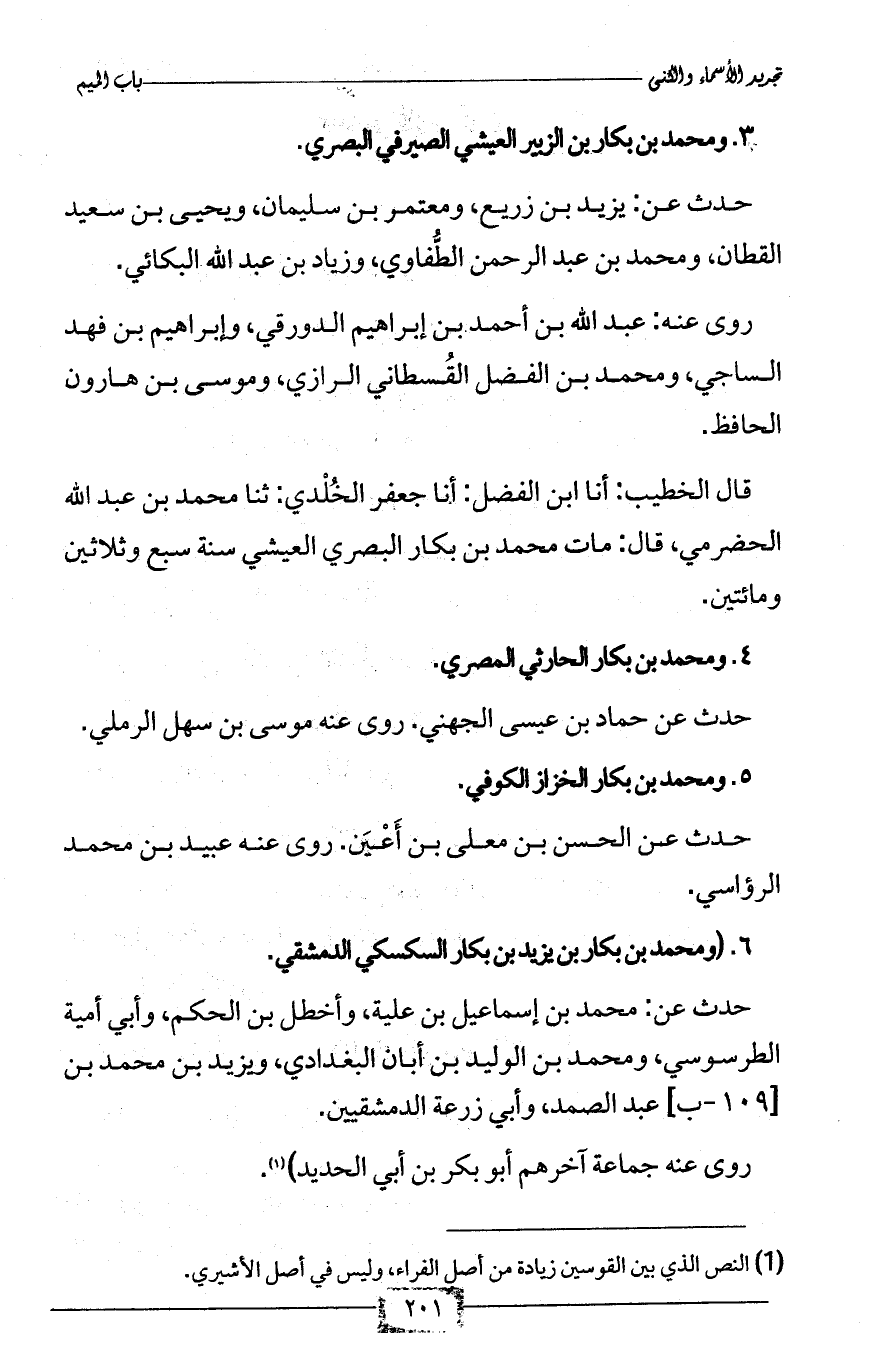 3 - ومحمد بن بكار بن الزبير العيشي الصيرفي البصري.
