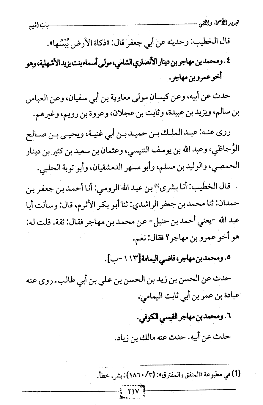 5 - ومحمد بن مهاجر، قاضي اليمامة [113 - ب].