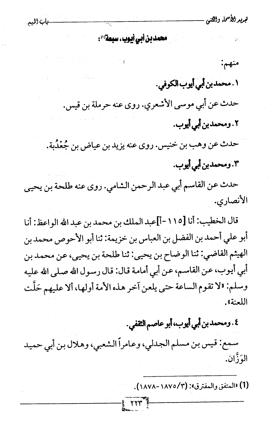 (¬1) «المتفق والمفترق»: (3/ 1875 - 1878).
